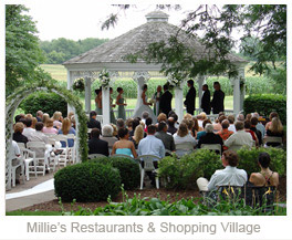 The natural beauties of the countryside and the English gardens with the charming Victorian Gazebo are some of the first things which attract brides and grooms to Millie’s. The Gazebo is available for your wedding ceremony from early spring through late fall (weather permitting), or you may have your wedding in our Garden Room Chapel. The fee for use of the Gazebo or Garden Room Chapel is only $400.00